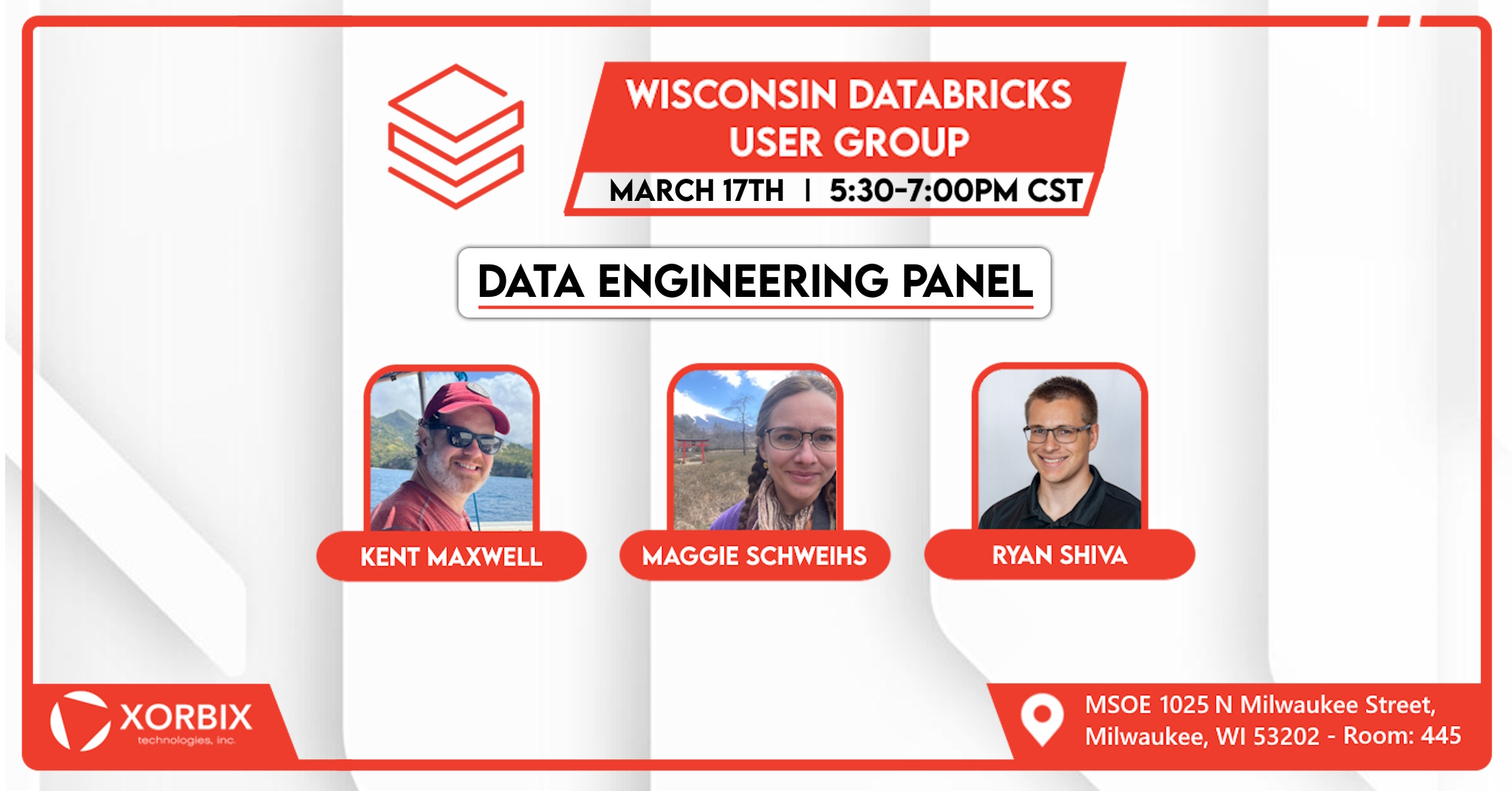 Join us on March 17 at the Milwaukee School of Engineering campus for an energizing evening with the Milwaukee Databricks User Group from 5:30–7:00 PM. We’re bringing together top data engineers and architects from across the region for a fast-paced, no-fluff panel discussion on what it really takes to build, scale, and modernize today’s data platforms. From architecture decisions and governance to performance, cost optimization, and real-world production lessons, this conversation is all about practical insight you can apply immediately. The panel will feature Kent Maxwell, Maggie Schweihs, and Ryan Shiva. Come early to network with Milwaukee’s growing data community, stay for a dynamic discussion, and leave with new connections and actionable ideas to elevate your data strategy.
